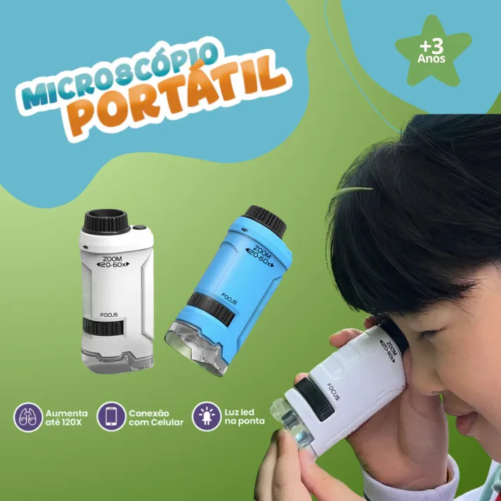 O Microscópio Portátil de mão para Crianças vai revolucionar o desenvolvimento cognitivo do seu filho/a, estimulando mais tempo ar livre, cultivando o interesse pela ciência e melhorando a coordenação motora.